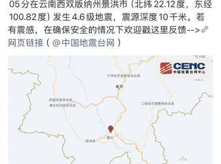 2月17日23时05分,景洪市发生4.6级地震!