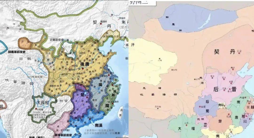 可以对比后晋和后唐的地图,后晋就是割让掉了燕云那一带给契丹。