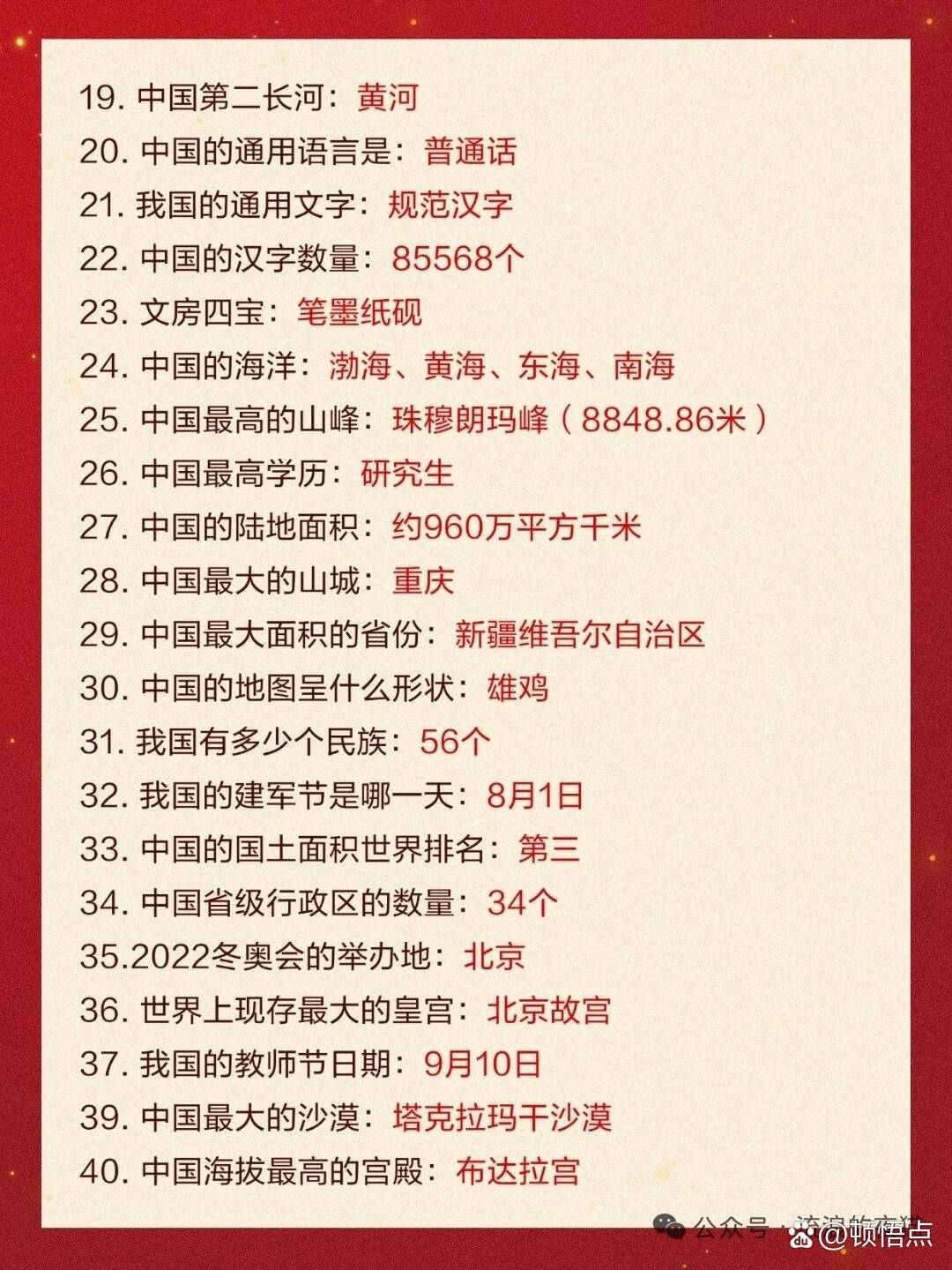 关于祖国的185个知识,太全面啦。一起来看看!
