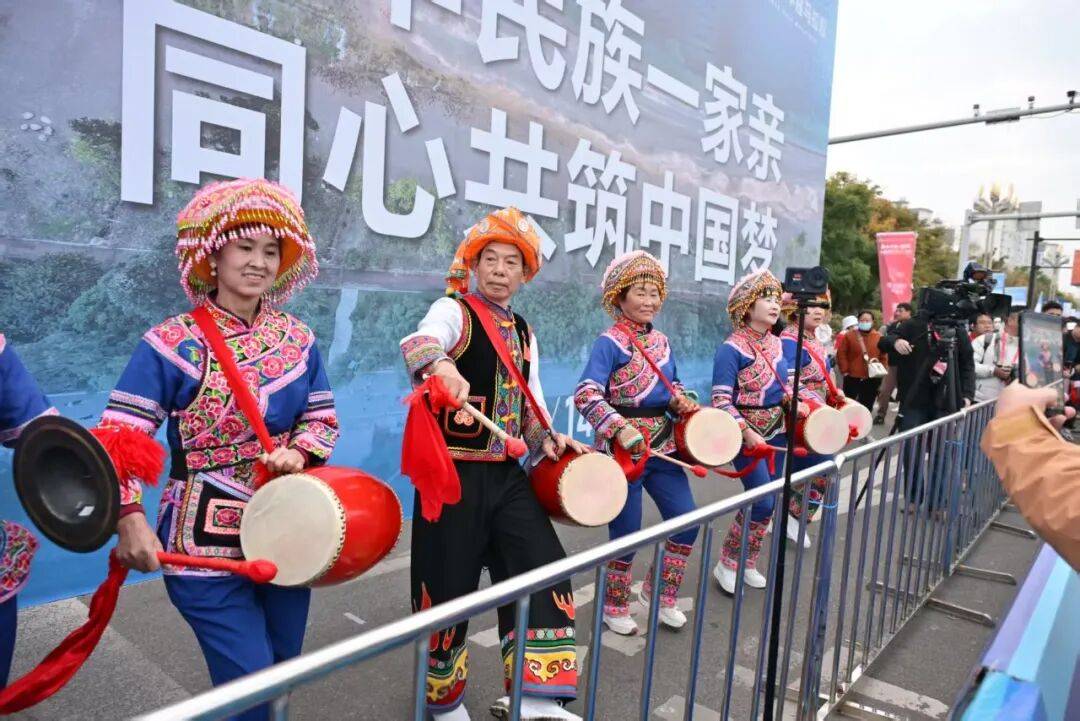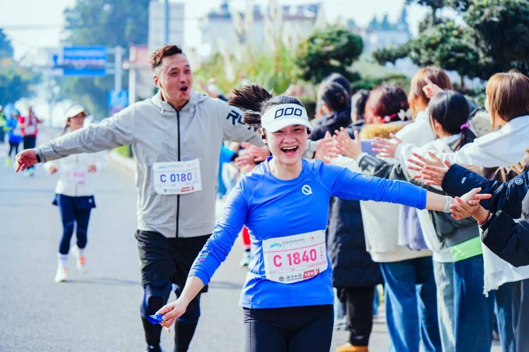 赛道上不仅有风景,更有风情。赛道沿途设置了非遗展演、乐队驻唱等特色环节为奔跑赋能,关索戏等本土非遗节目尽显文化底蕴,激昂旋律与热情欢呼驱散疲惫。沿途观众挥舞旗帜呐喊加油,让这场赛事超越竞技,成为浸润温情的全民狂欢。