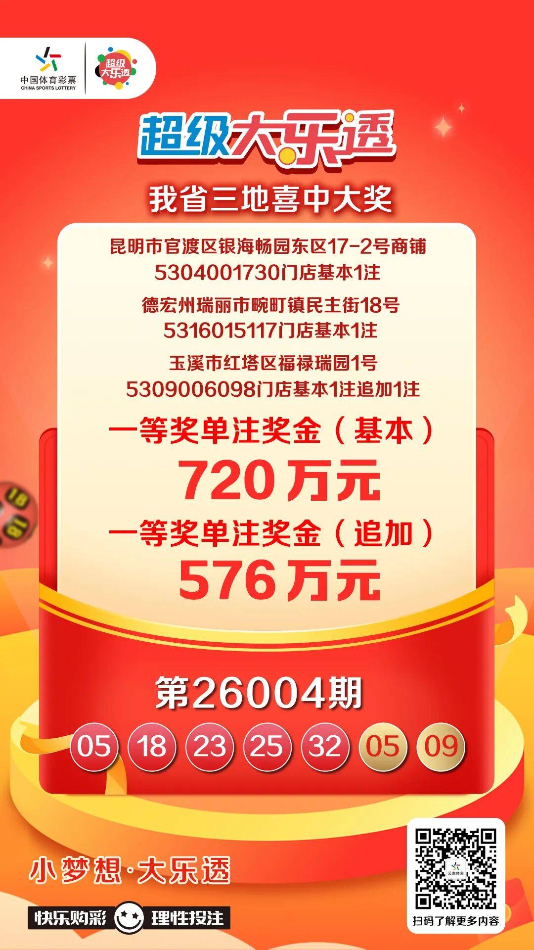 [今日红塔] 720万元!红塔区又有人喜中大奖,基本一注,追加一注!