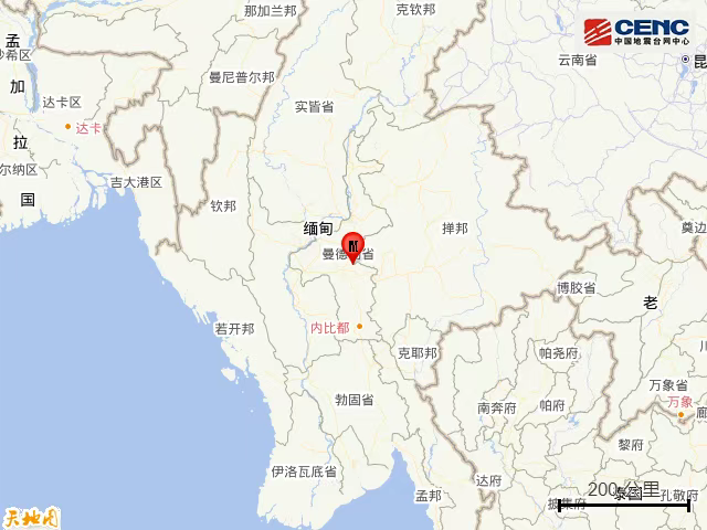 周边城市:震中200公里范围内有12座大中城市,最近为密铁拉(Meiktila),距震中约26公里。