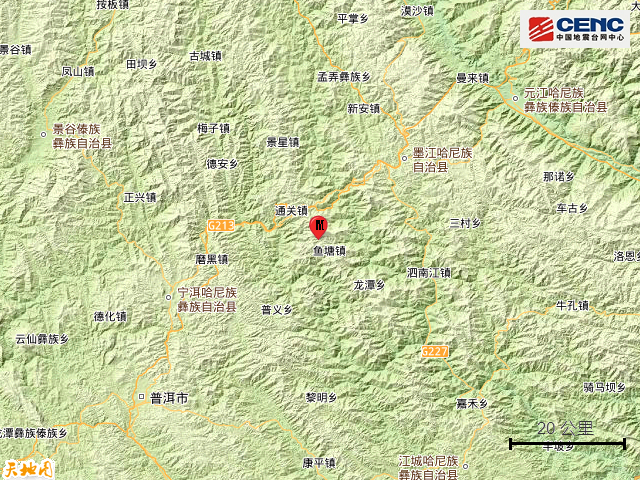 云南普洱市墨江县发生3.6级地震