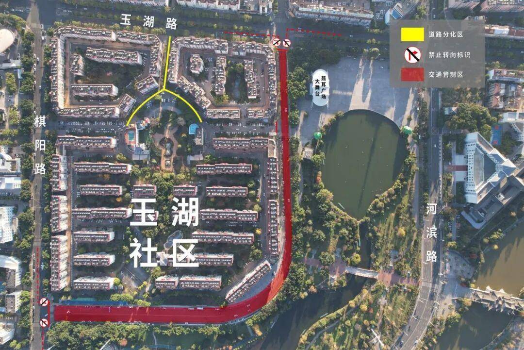 为确保活动期间各项工作的顺利进行,2026年红塔区新春“玉见米线”系列活动组委会决定对环湖路(聂耳文化广场舞台至市人大门口)实施临时交通管制,由于展会搭建需要,管制时间为2月2日—2月28日,交通管制期间,车辆由玉湖路、棋阳路等附近道路绕行。红色为道路封闭区,黄色为路锥道路分化区。