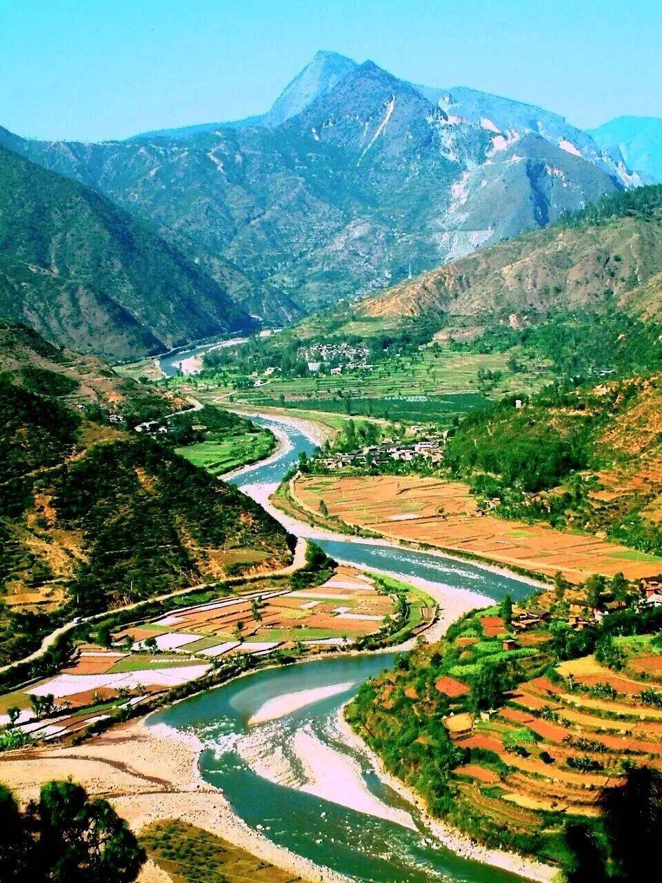 江水蜿蜒,两岸青山,