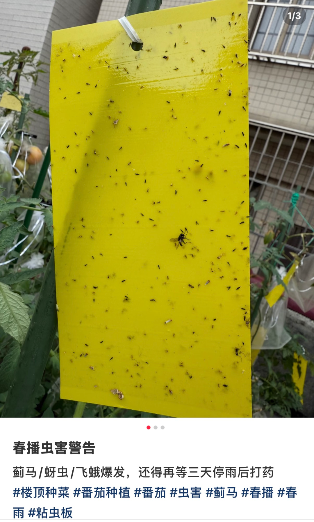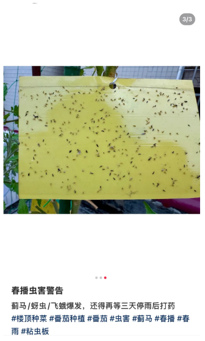 此外,阳台如有绿植,可通过将黄色粘虫板挂在植物上方10厘米、喷洒肥皂水、修剪褐色“饺子状”虫瘿等方法进行防治。(虫瘿是植物组织遭受昆虫等生物取食或产卵刺激后,细胞加速分裂和异常分化而长成的畸形瘤状物或突起)