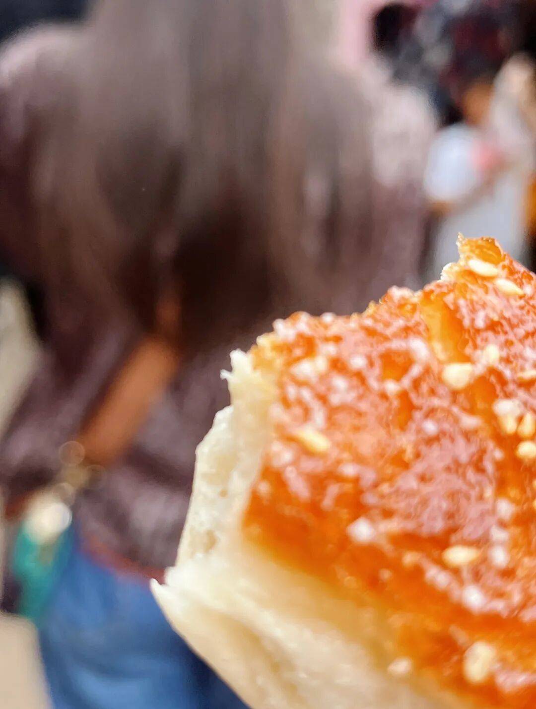 伸手拿起一个,顶部依旧是熟悉的松软感,咬下去,底部还是那口甜滋滋、脆酥酥的质感,蜂蜜与芝麻的香气在口中散开,和小时候吃到的味道分毫不差。一口下去,童年的回忆瞬间涌上心头。