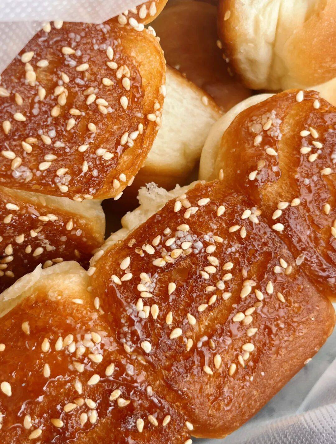金黄酥脆的底,一口 “咔嚓”,是童年的专属音效。蜂蜜的甜香混着芝麻香,松软的面包体捏一下还会回弹。外脆里软的反差感,就是小时候无法复刻的味道。