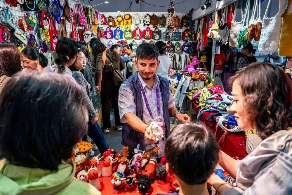 第9届南博会南亚馆尼泊尔展区的参展商向观众推介特色商品。