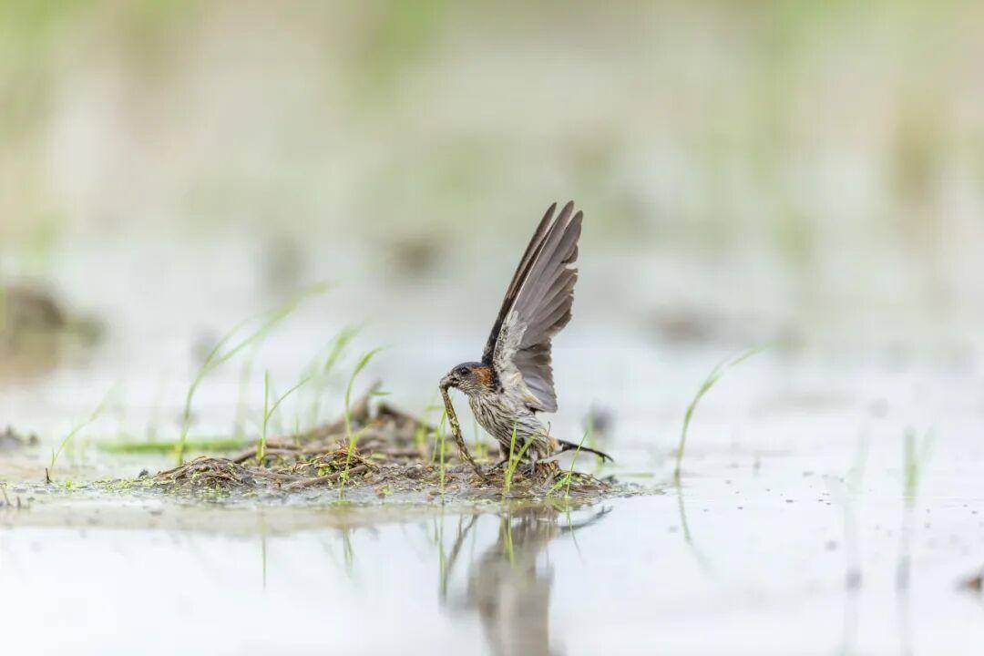 燕子衔草含泥筑巢