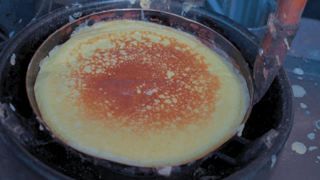 清晨的早点摊前,摊主熟练地支起平底锅,倒上少许香油,待油温微热,舀一勺发酵好的米浆,缓缓倒入锅中,用铲子轻轻摊成圆形。火候是关键,小火慢煎,才能让粑粑外微焦、内软糯。煎至两面金黄时,表面会鼓起细密的小气泡,酸香混合着米香、油香,瞬间弥漫开来,勾得人直流口水。
