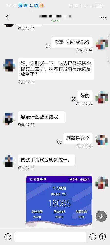 当事人浏览贷款软件时,下载了假冒“360借条”APP并填写身份信息、银行卡号申请贷款。平台客服以银行卡号填写错误、贷款资金被冻结需解冻为由,诱导其下载“时莱”APP,随后自称客户经理的人员与其联系,以解冻充值为由,通过微信群红包骗取5999元。其后对方又以提现过快为由要求继续充值,当事人通过微信红包转账、登录对方提供的淘宝账号消费等方式,再次转出55252元,发现被骗。总计损失61000余元。