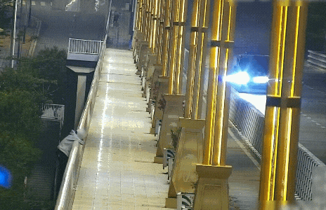一小伙在大桥护栏外