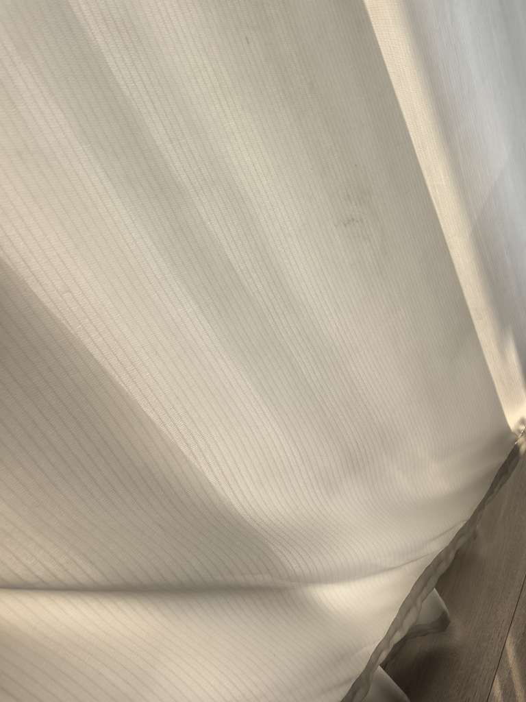 避雷吧!以后洗衣服,洗窗帘还是算了!大小洗了8道窗帘,窗帘洗好了老板娘说要加钱,二话不说就加给她了。晚上挂的窗帘,当时也没在意,只是跟她们工作人员说这个窗帘是洗过得吗?怎么那么脏,也没多想,过年也没在家,3月3号才回来,一直都没仔细看过,今天仔细一看,我去,直接是没洗吧!