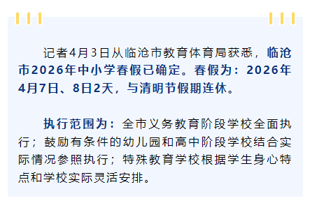 临沧市2026年中小学春假已确定