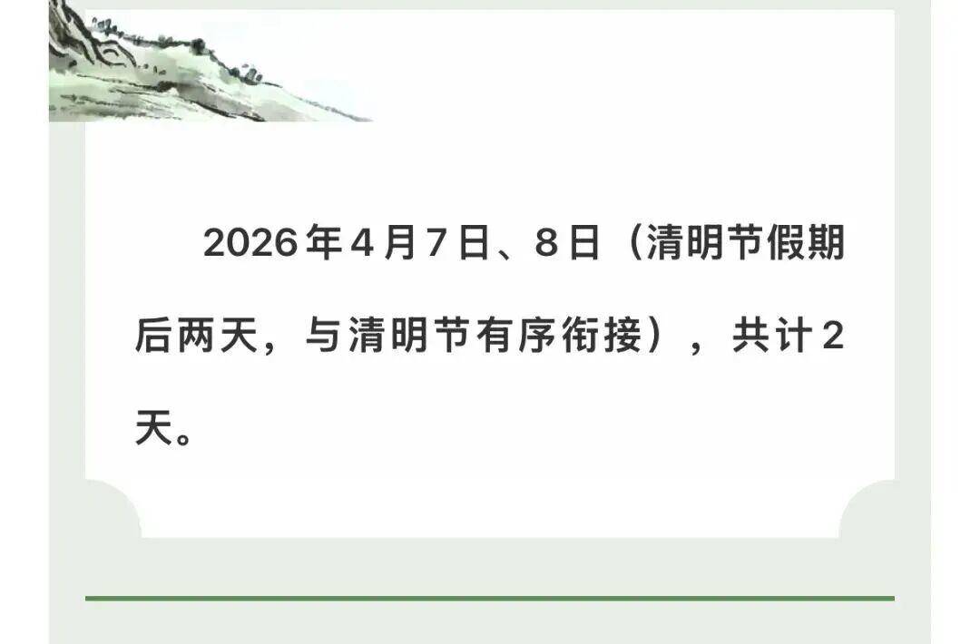 春假为:2026年4月7日、8日2天