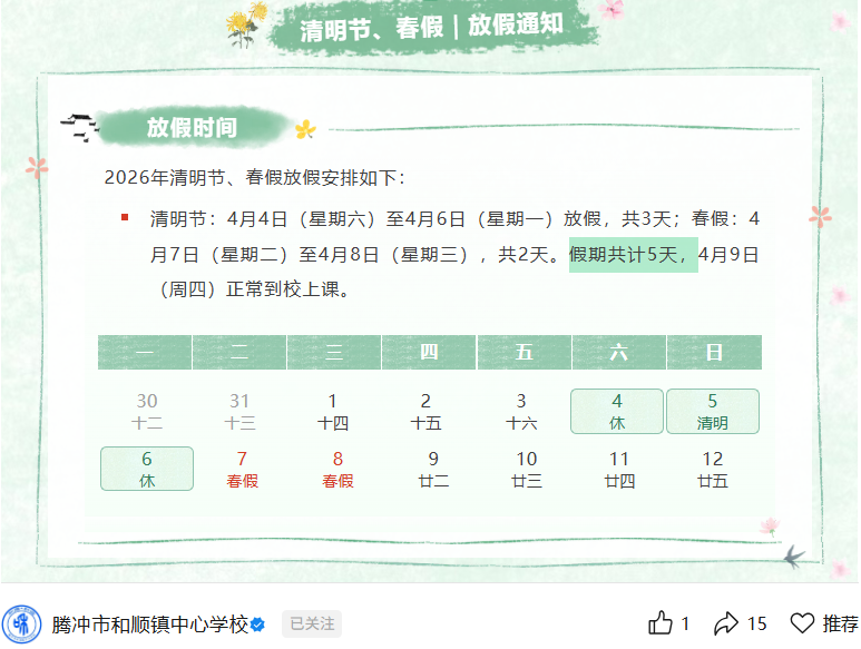 与清明连休,共5天!云南多地通知放春假