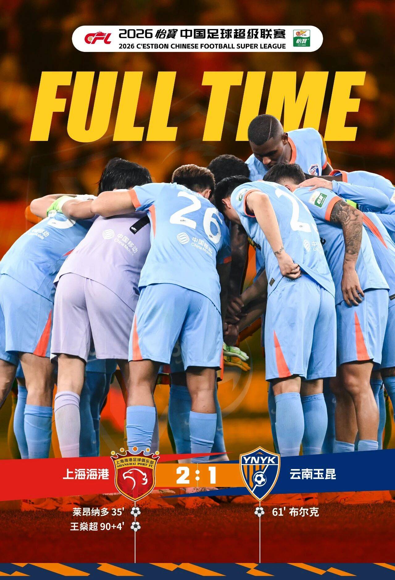 战报·上海海港2:1云南玉昆