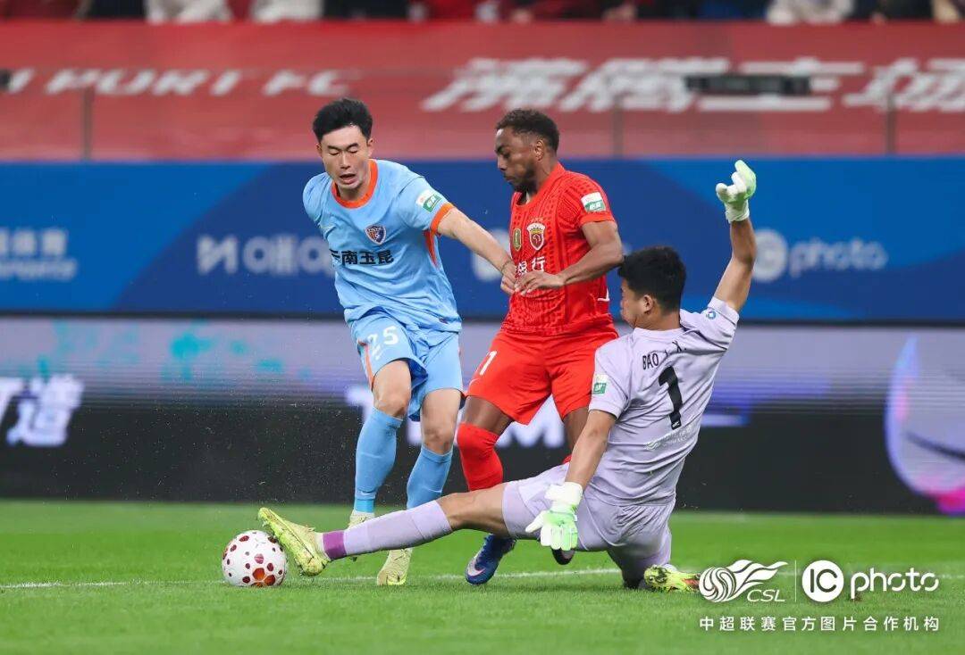 第61分钟,约尼查右侧角球传中,布尔克头球攻门扳平比分,云南玉昆1-1上海海港。
