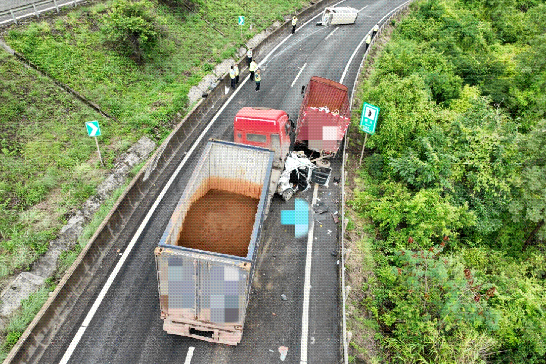 2024年7月11日,张某环驾驶小型面包车沿昆磨高速由昆明往磨憨方向行驶,7时19分许,当行至昆磨高速峨山段133公里580米处时,其所驾车辆与道路左侧护栏碰撞后向右侧翻。7时32分,石某驾驶云F号重型半挂牵引车行至事发路段时,与等候通行由李某二驾驶的云J号小型轿车(拉载李某青、苏某玲)相撞,造成云J号小型轿车乘客苏某玲现场抢救无效死亡的道路交通事故。